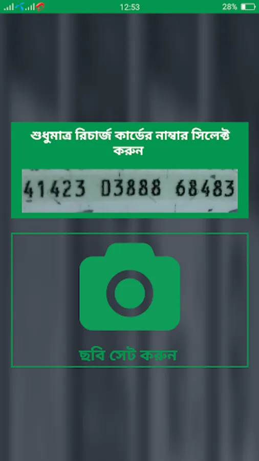 Camera Scan Mobile Card is a quick application to recharge your mobile phone. You can use it easily . And you can make your code format in setting screen.