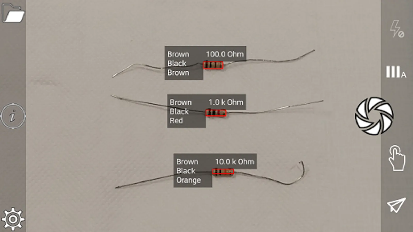- Aligned live detection: Align the resistor with the rectangle and get the resistance instantaneously
