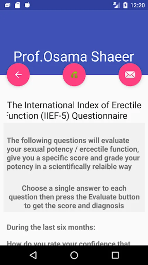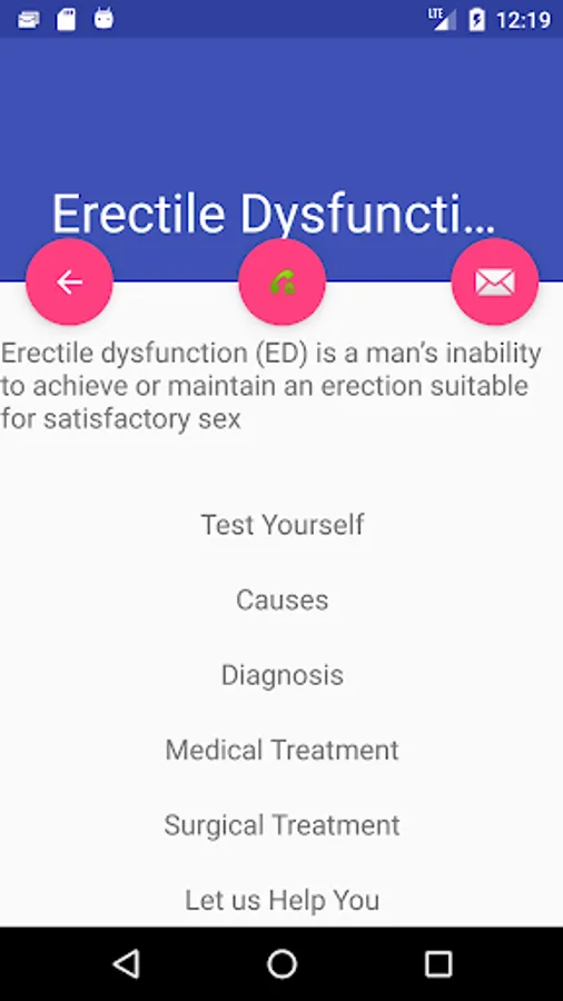 This application allows you to test if you have impotence, determine its degree, and understand the different ways for treatment of weak erection including medications for erectile dysfunction such as Viagra, Levitra, Cialis, and highly successful surgical methods such as penile prosthesis implantation / penile implants. It also informs you of the criteria for determining whether or not you have premature ejaculation and how to treat it, in addition to full details on male infertility, semen analysis, causes of weak fertility as varicocele and otherwise, and how to treat them including assisted reproduction, IVF and ICSI.