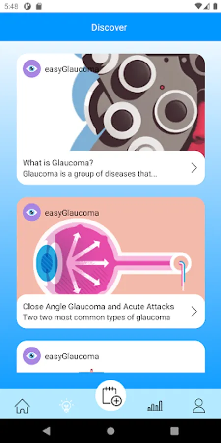 Use easyGlaucoma's intuitive interface to build your glaucoma knowledge using evidence based quizzing methods. Monitor your progress, read up on more glaucoma knowledge, and learn how to better protect your vision!
