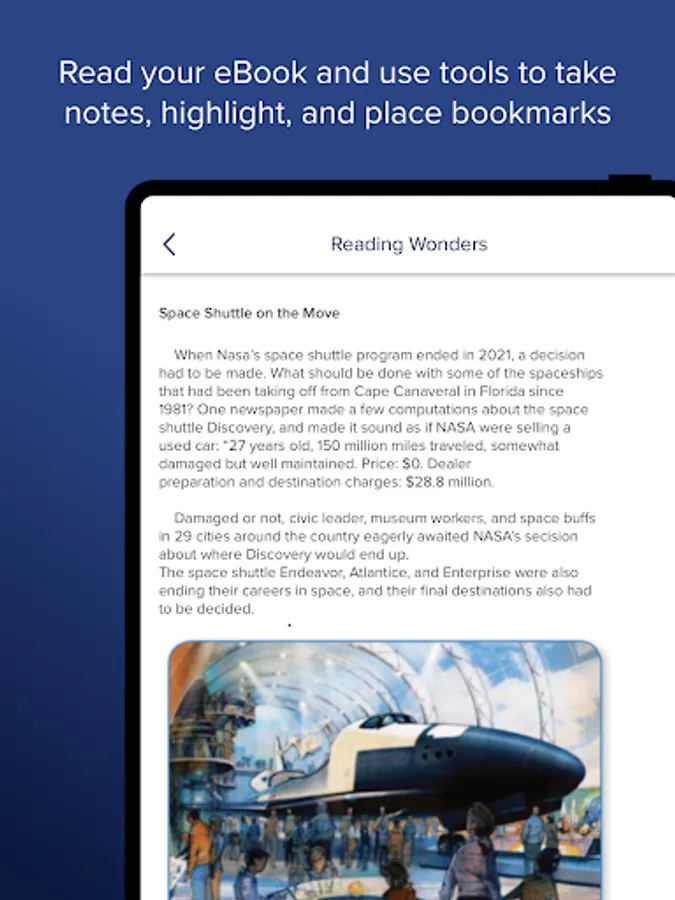 Enjoy a mobile-friendly reading experience in your eBook with easy navigation and helpful viewing tools like pinch, zoom, and text search. Select on-page links to view interactive resources and use the embedded tools (notes, bookmark, highlighter, and even a pen to write on the screen) to stay organized.