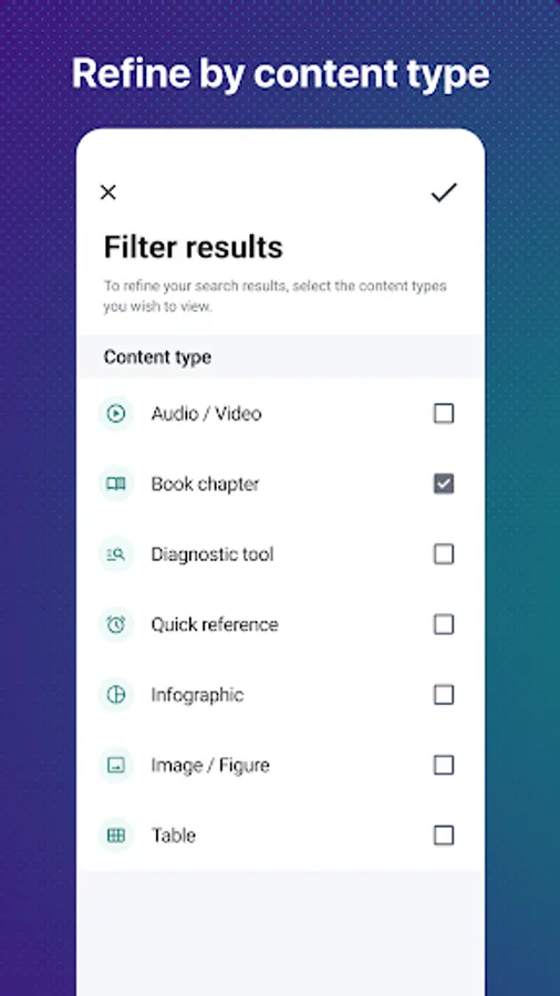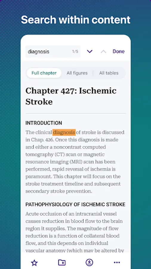Search across a number of medical resources such as videos, podcasts, images, infographics, and textbooks, including Harrison’s Principles of Internal Medicine or Tintinalli’s Emergency Medicine, so that you can study in a way that suits your style and time constraints.