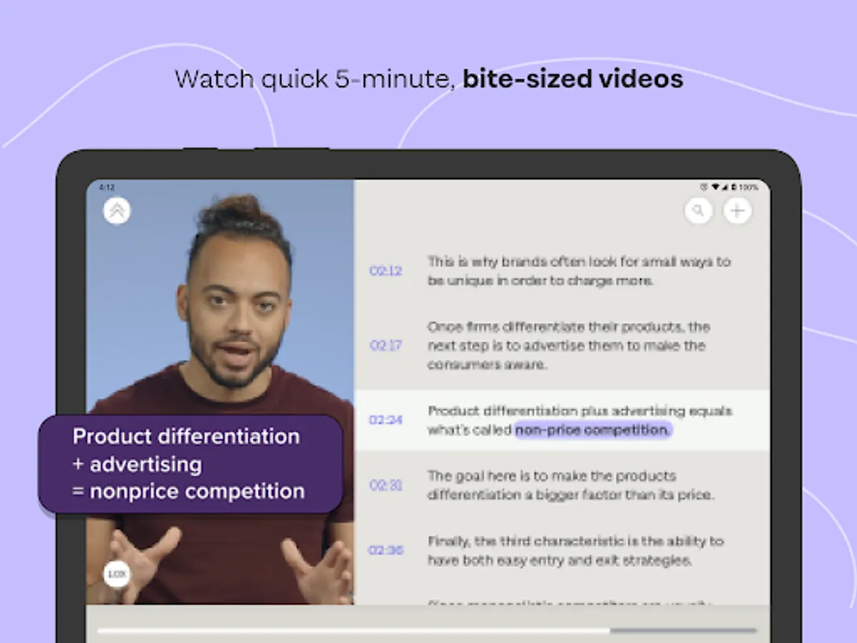 Sharpen helps you know what to focus on with short videos that teach the key concepts in each subject, along with quizzes and flashcards to test your comprehension.