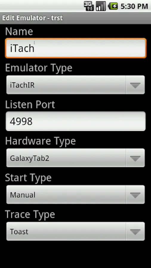 - Start IR Blaster, create an iTach IR emulator and start the emulator