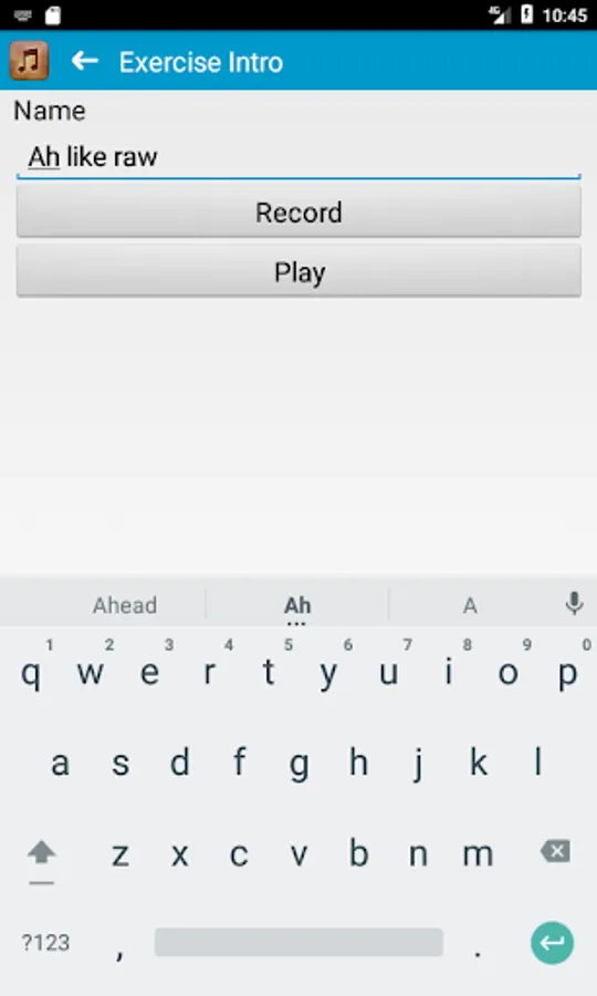 Exercise introductions are short audio clips you can create in the app. For example, you might have an audio introduction 'Ahh like law' or 'Lip burble'.