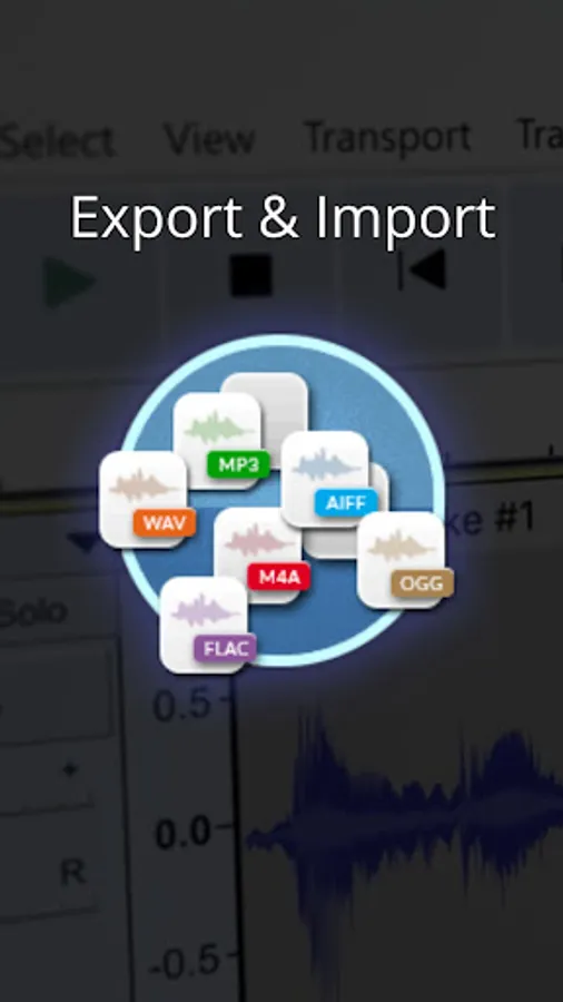 + Audacity App supports Import and Export of WAV, AIFF, MP3, AU, FLAC and Ogg Vorbis files.