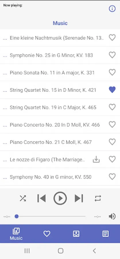 In this app Android you will be streaming classical music online, so you will need to have Internet access, we recommend WiFi whenever possible. However, there is an option to download classical music free to your Android, this way you can listen to classical music from this app even when you don’t have Internet access.