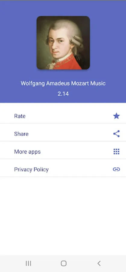 This app consists of Wolfgang Amadeus Mozart mp3 music only.