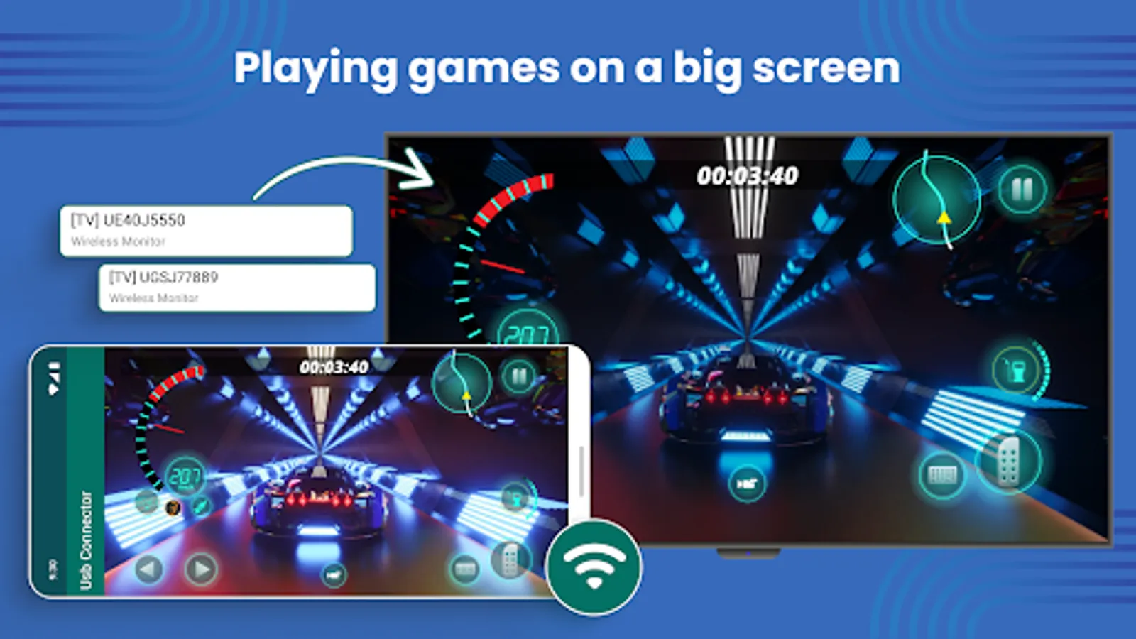 One of the key features of USB Screen Share - Phone to TV is its USB connection tool. This USB screen mirroring tool lets you connect your device to your TV using a Wi-FI or a cable without additional hardware or software. Once connected, you can use your TV as a second screen for your device, allowing you to watch videos, play games, and view photos on your TV.