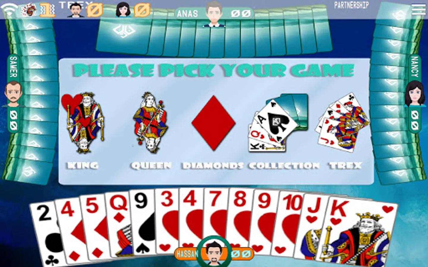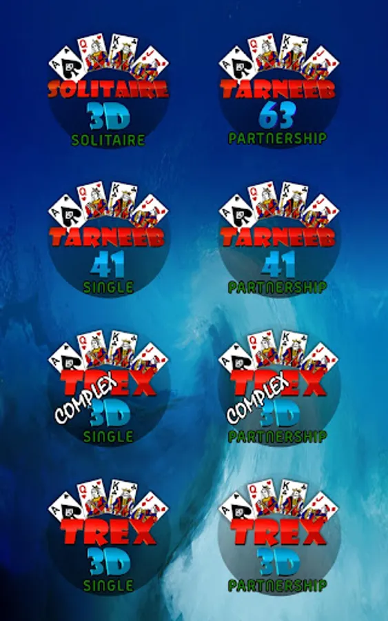 A group of paper professional games within one game, a Solitaire - Tarneeb 41 - 41 Tarneeb partnership - partnership Tarneeb 63 - Trix - Trix partnership - Trix Complex