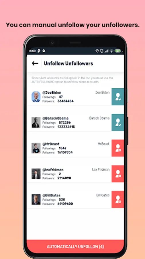 Unfollow Follow Unfollow Follow Follow actions are being performed.