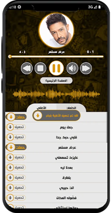 The application of the great star, Mohamed Hamaki, provides lovers of Arabic and oriental music with a unique opportunity to listen to his latest works and communicate with him through a reliable and secure platform. You can now download the "Mohamed Hamaki" application on your smartphone and listen to new and old songs without interruption. With a modern and easy-to-use design, the application allows you to easily access and listen to all Hamaki's songs anytime and anywhere.