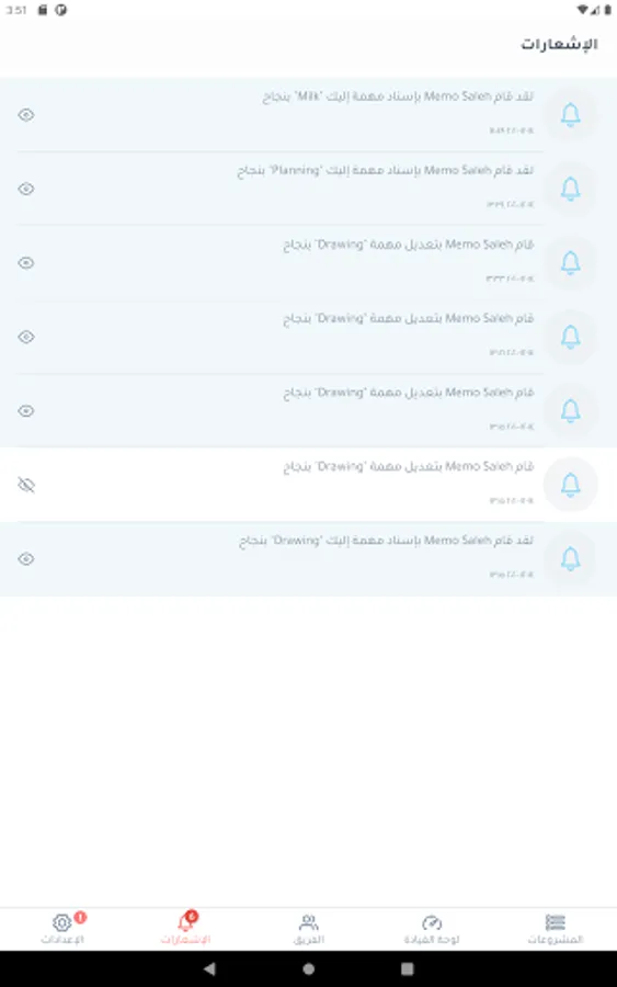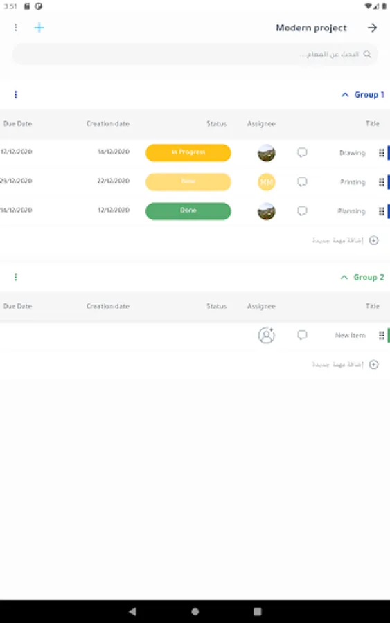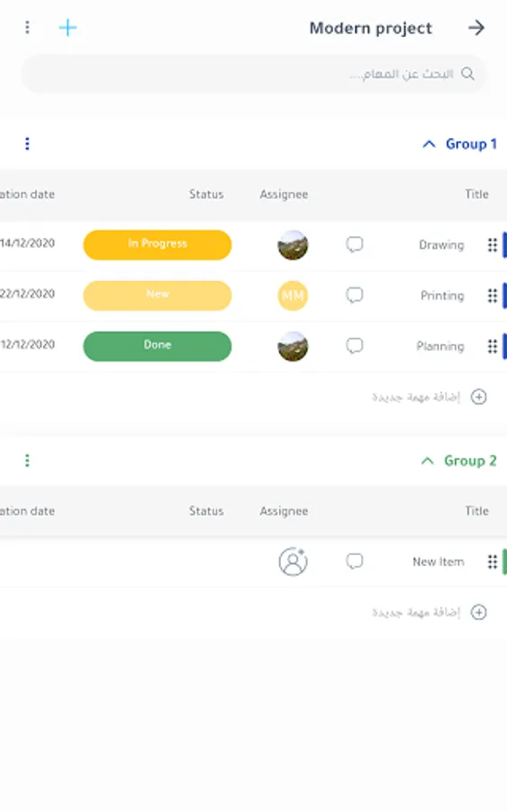 قائمة عرض تعرض جميع المهام والخطط، ويمكن لفريق العمل الاطلاع عليها بشكل مستمر.