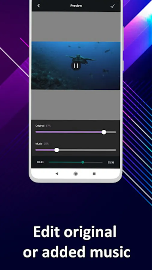 ♬ Convert boring videos by adding new attractive audio from your music library.
