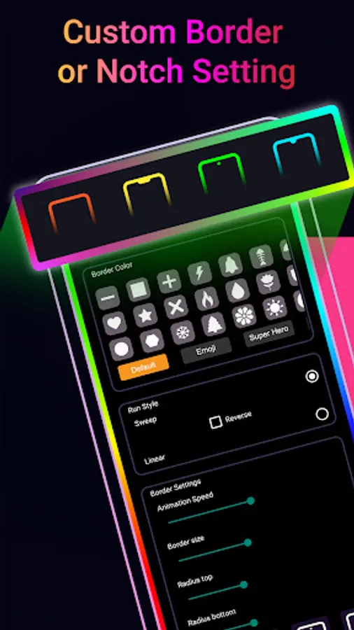 In this app, you have many options to customize lighting and set them as live wallpapers. You can change colors, adjust height and width, borders, display notch, etc. Be creative with these powerful settings. You don't have to worry about your device's battery because the "Edge Lighting app" is optimized to save battery power.