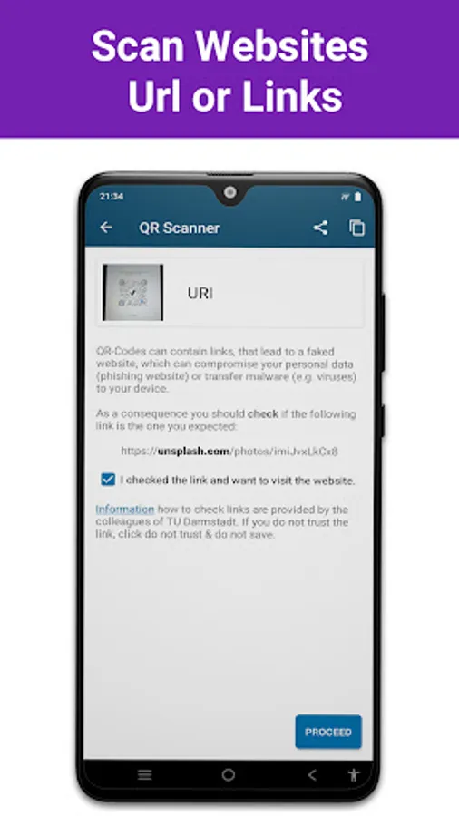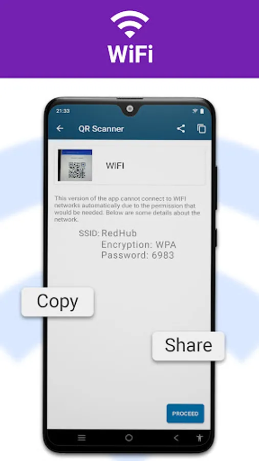 QR & Barcode Scanner can scan and read all QR codes/barcode types including text, URL, ISBN, product, contact, calendar, email, location, Wi-Fi, and many more formats. After scan and automatic decoding, a user is provided with only the relevant options for individual QR or Barcode type and can take appropriate action.