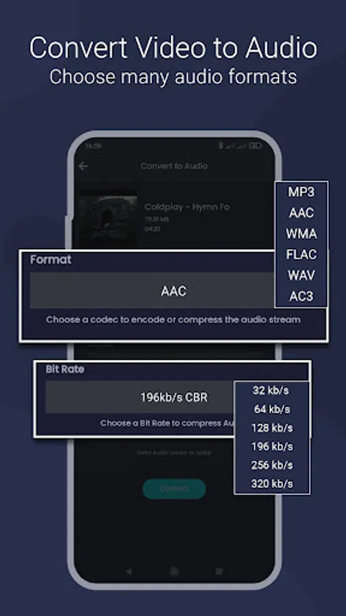 Compress video size, convert video to audio, Trim videos, and extract audio from video with this app. Reduce video size, shrink video, and save your device's storage space.