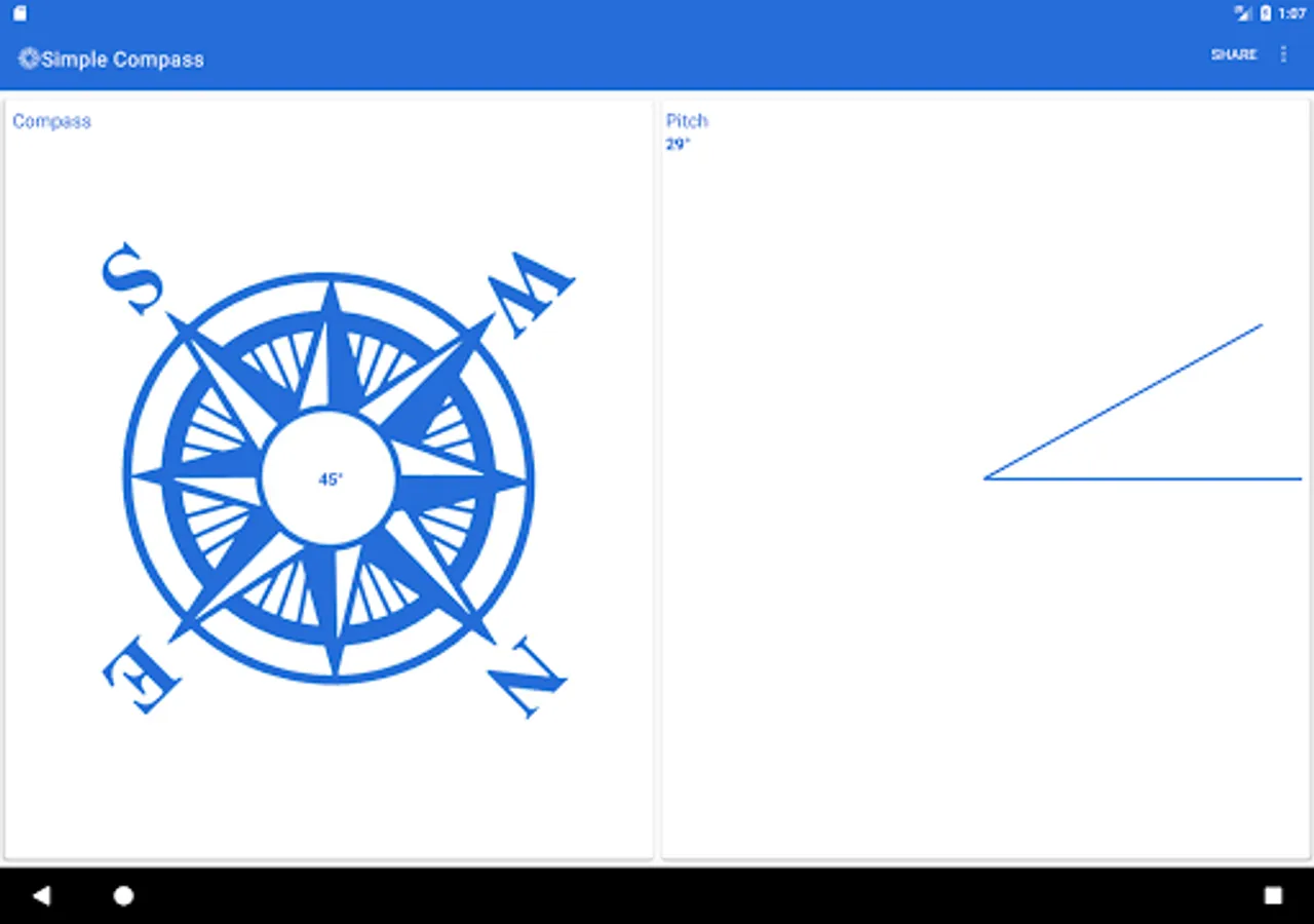 Simple Compass used for showing the direction and the pitch. This application is easy to use and fast the other compass applications.