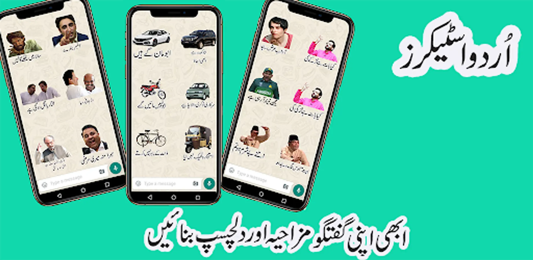 Urdu stickers include the funny urdu stickers, Eid stickers, Islamic stickers, Ramzdan stickers, Love stickers, Funny stickers and Funny urdu stickers.