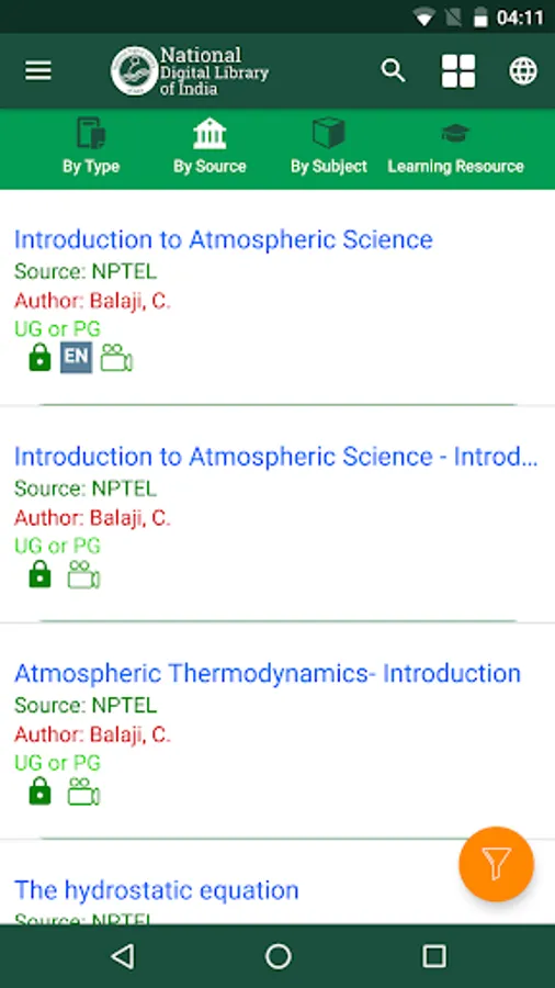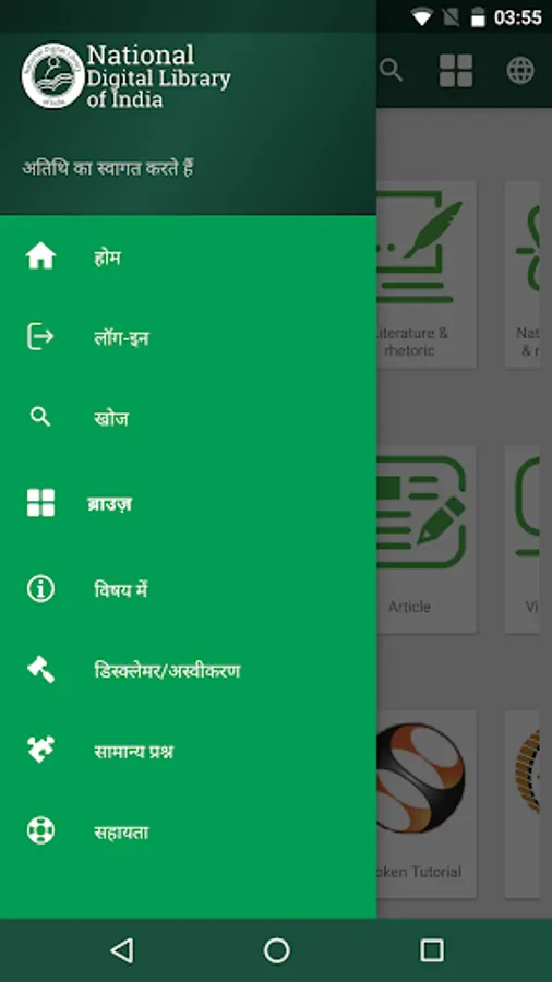 Ministry of Human Resource Development under its National Mission on Education through Information and Communication Technology has initiated the National Digital Library of India (NDL India) pilot project to develop a framework of virtual repository of learning resources with a single-window search facility. Filtered and federated searching is employed to facilitate focused searching so that learners can find out the right resource with least effort and in minimum time. NDL India is designed to hold content of any language and provides interface support for leading vernacular languages. It is being arranged to provide support for all academic levels including researchers and life-long learners, all disciplines, all popular form of access devices and differently-abled learners. It is being developed to help students to prepare for entrance and competitive examination, to enable people to learn and prepare from best practices from all over the world and to facilitate researchers to perform inter-linked exploration from multiple sources.