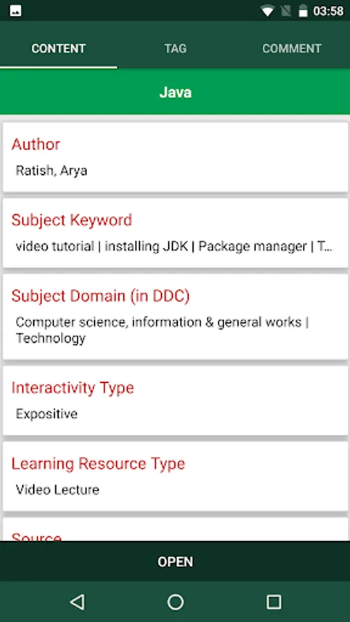 • Contents available for different subject domains: Technology, Arts and Humanities, Social Sciences, Natural Science etc.