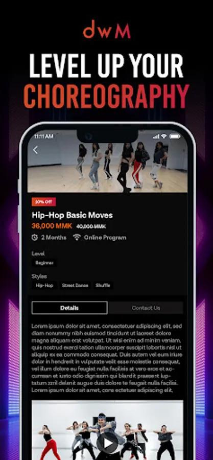 dwM is one of the best dance studio in Myanmar . Now you can learn about our exciting dance classes online through this app.