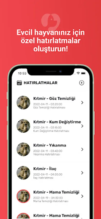 We can send you reminders (birthday, food, etc.) on the dates you set for your pet.