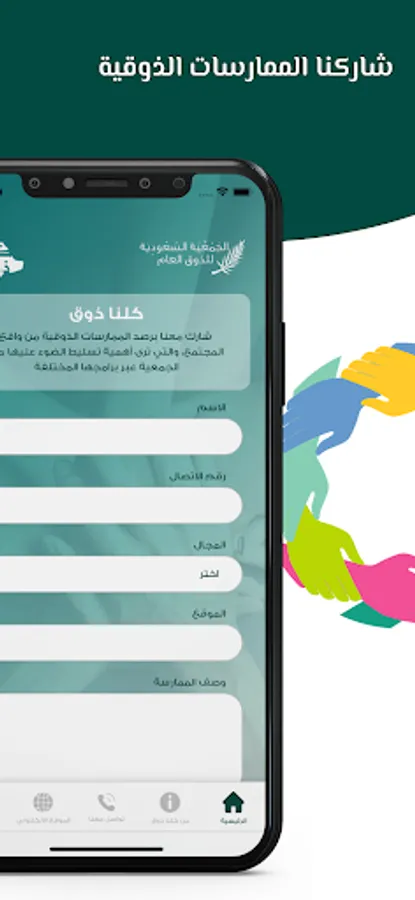 The "We Are All Taste" application, launched by the Saudi Society for Public Taste, seeks to involve community members in monitoring practices related to public taste in various locations, such as parks, roads, means of transportation, public facilities, etc., in order to be identified and dealt with with the association's partners as part of community awareness programs.