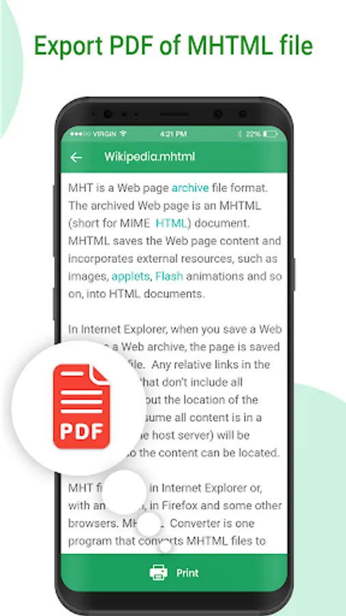 So download the MHT/MHTML Viewer & PDF Converter app to access your MHT/MHTML files using your mobile phone.