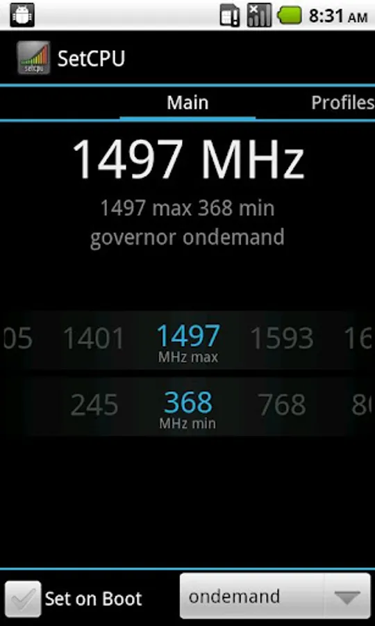 SetCPU's wide feature set make it useful to Android beginners and enthusiasts alike. Accelerate your processor to unleash your phone's true multitasking potential, or dial your CPU's speed down to save battery.