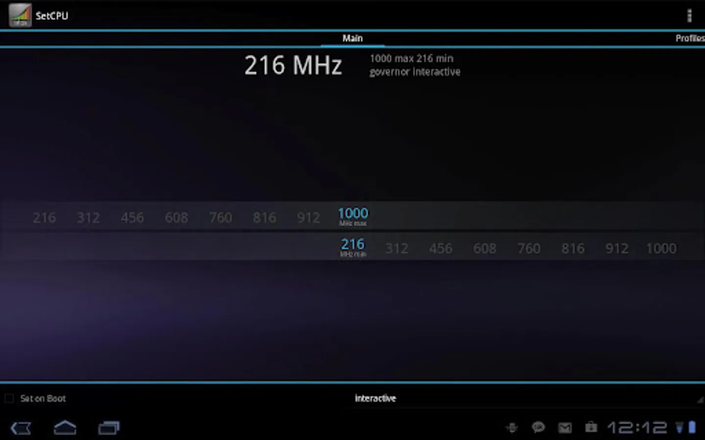 Start at boot: SetCPU will start a profiles service at boot, if enabled. It also sets default boot settings, if enabled. SetCPU does not run in the background if profiles are not enabled, and becomes inactive after settings, if any, are applied.