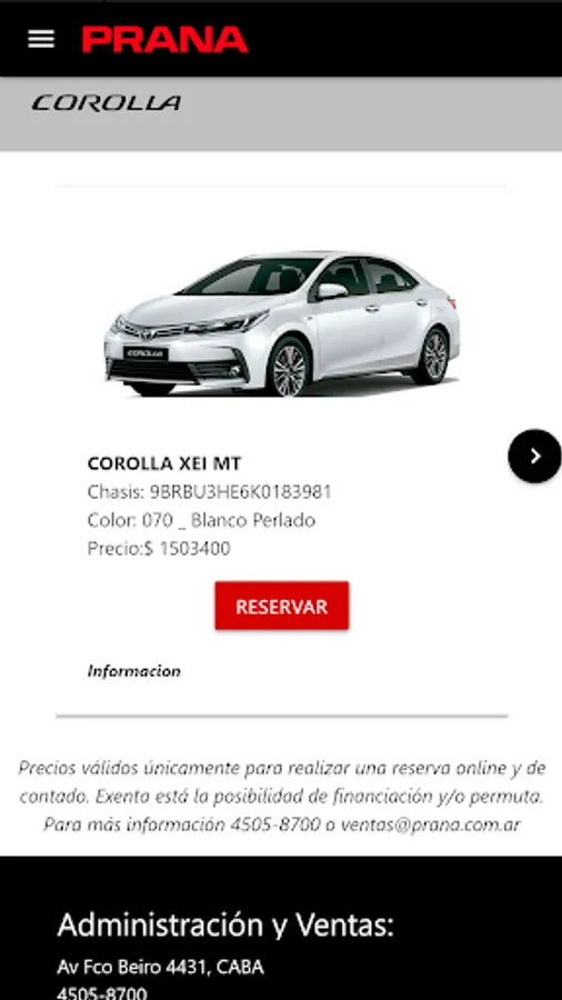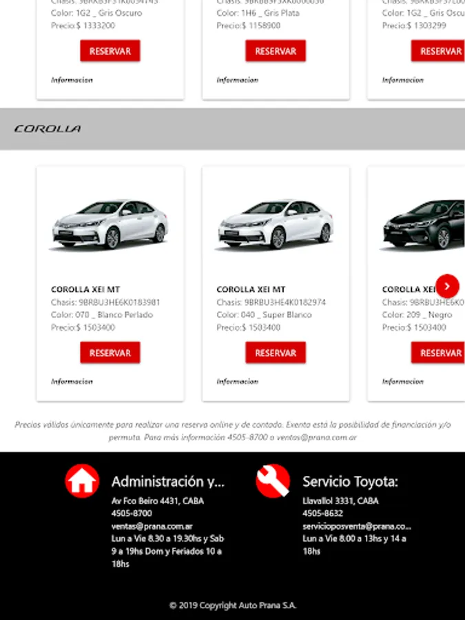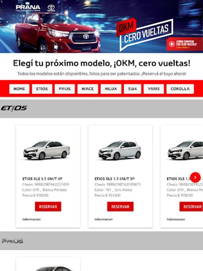 Site dedicated to the online reservation of vehicles, through an online portal with rotating stock.