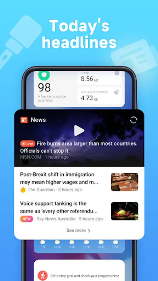 With App vault, you can get access to great tools and widgets with just one swipe. Shortcuts, weather and calendar widgets, and news are all in one place — no need to open extra apps. App vault's simple, clean design and customization options put the information you need at the forefront. You can even open other apps with one tap from App vault.