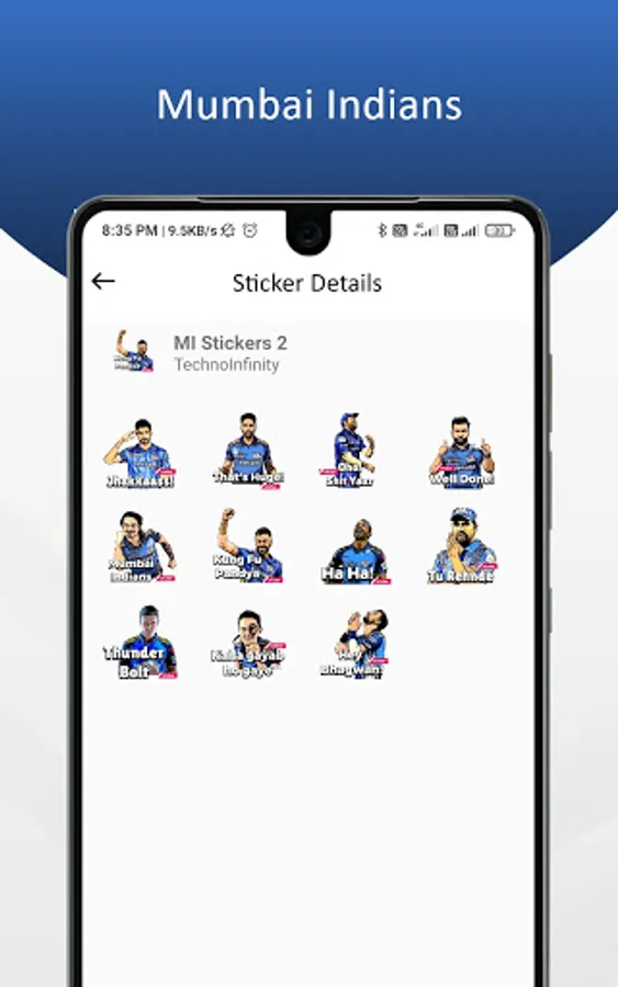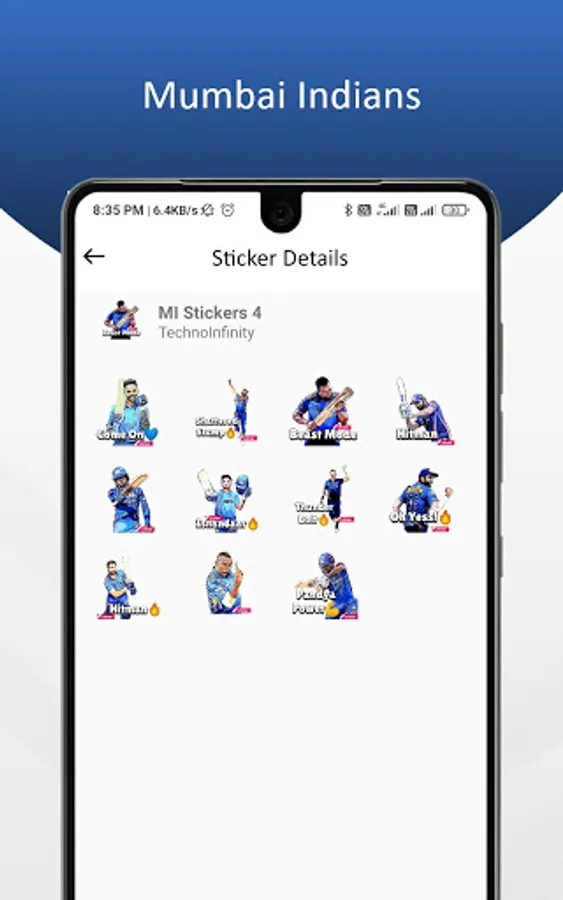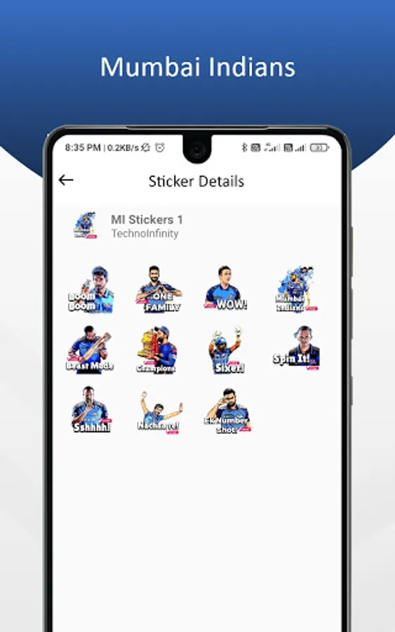 We have a amazing collection of Mumbai Indians team stickers for WhatsApp.