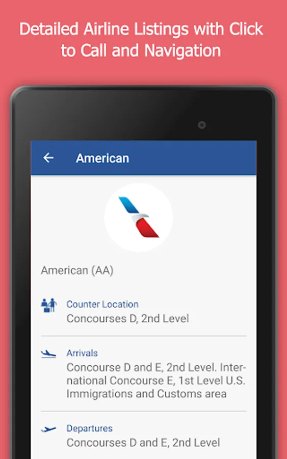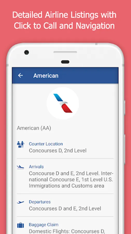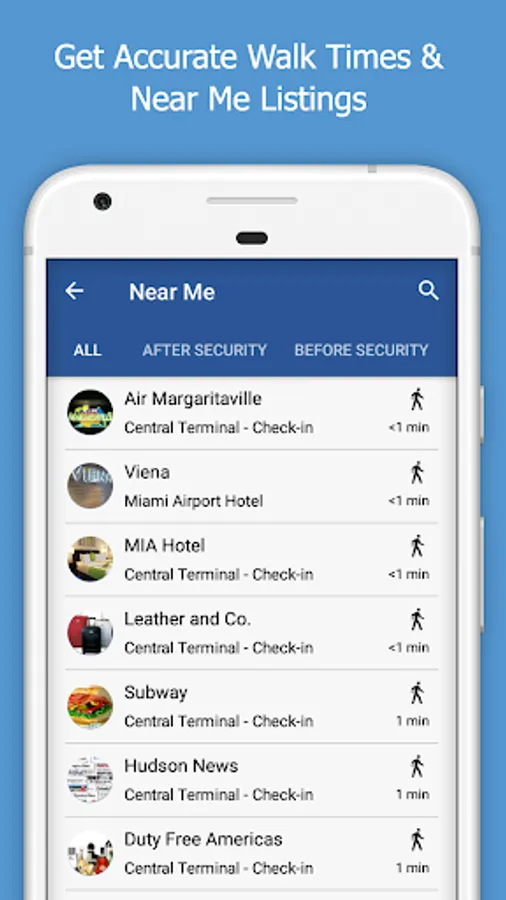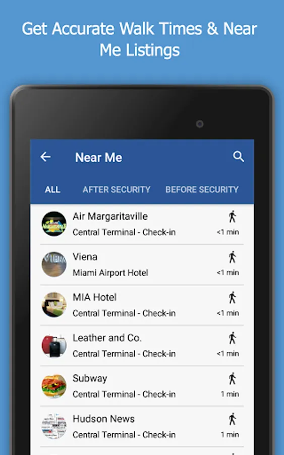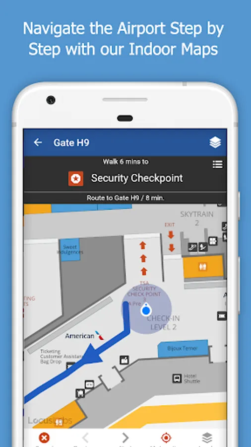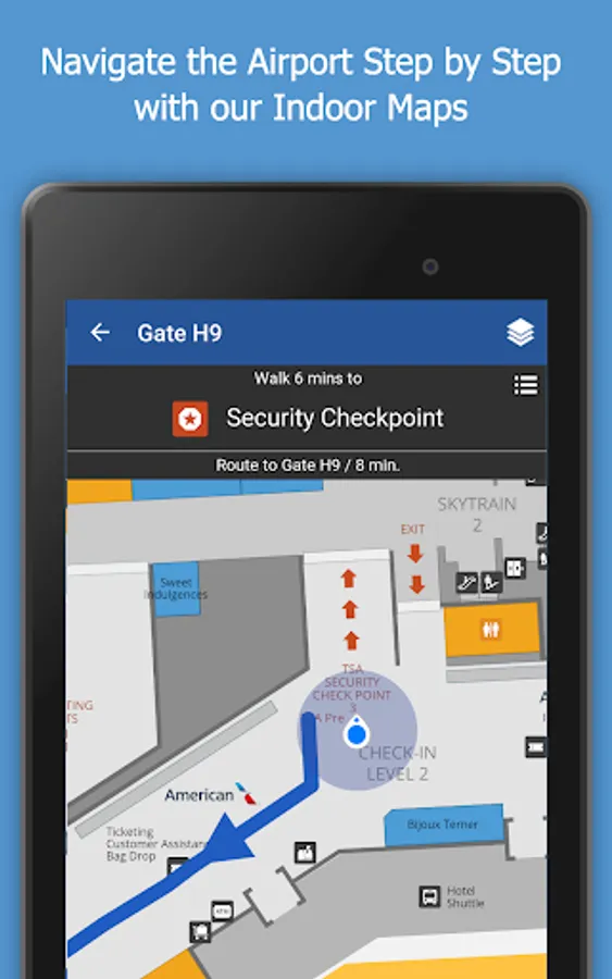 • Visual directions with walk times to find your gate, restaurants and more.