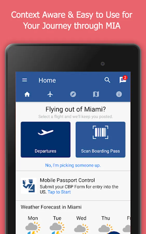 Whether you are on the way to, from or through the airport, MIA Airport Official offers all you need – from scanning your boarding pass for flight information to airport wide turn-by-turn directions. Download the app and experience your new personal travel assistant.