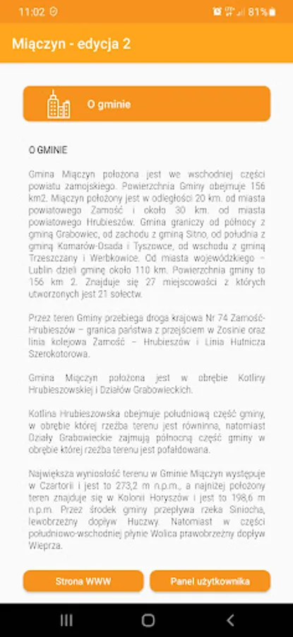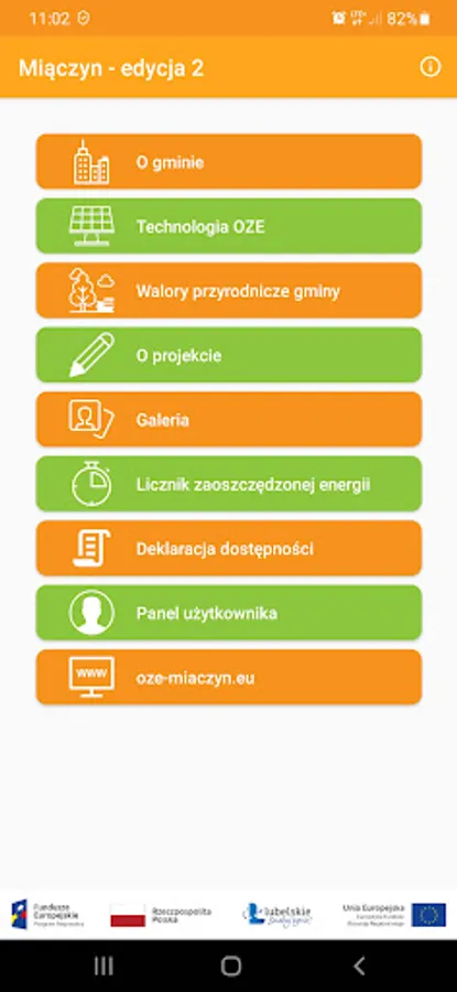 Ponadto, aplikacja prezentuje dane liczbowe dotyczące oszczędności energii, informacje dotyczące projektu i technologii OZE oraz dotyczące walorów przyrodniczych gminy jakie chroni projekt. W aplikacji dostępna jest galeria zdjęć z terenu Gminy Miączyn.