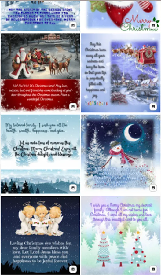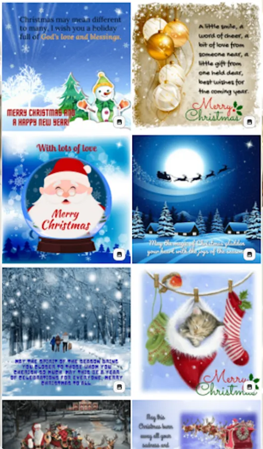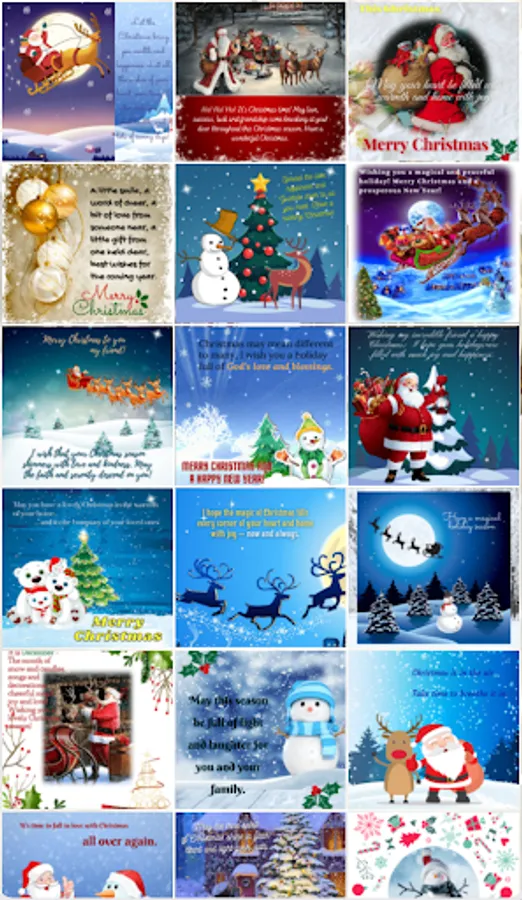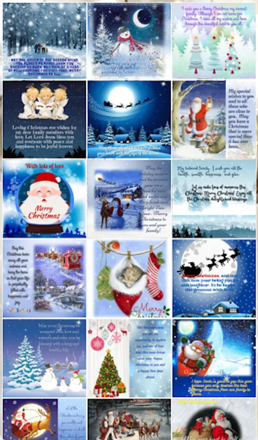 Christmas Messages app provides you with elegant design and beautifully composed Christmas cards suitable for this jolly season. Choose your favorite Christmas messages with images and send them to your friends and loved ones. Share these beautiful Christmas Messages with all your families and friends on social media apps namely Whatsapp, Facebook, Line, and others.