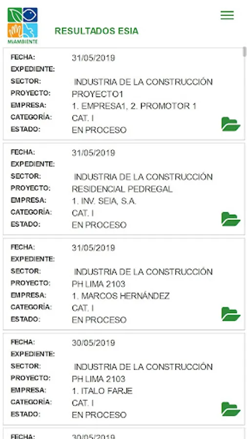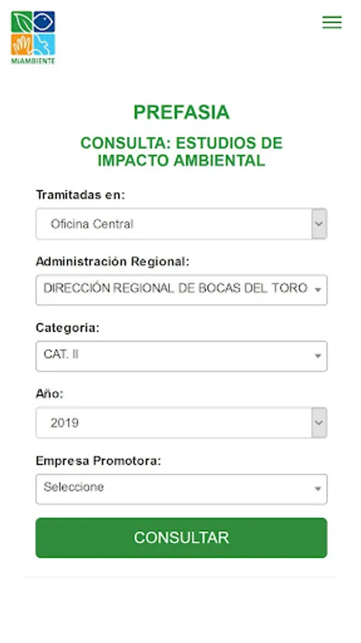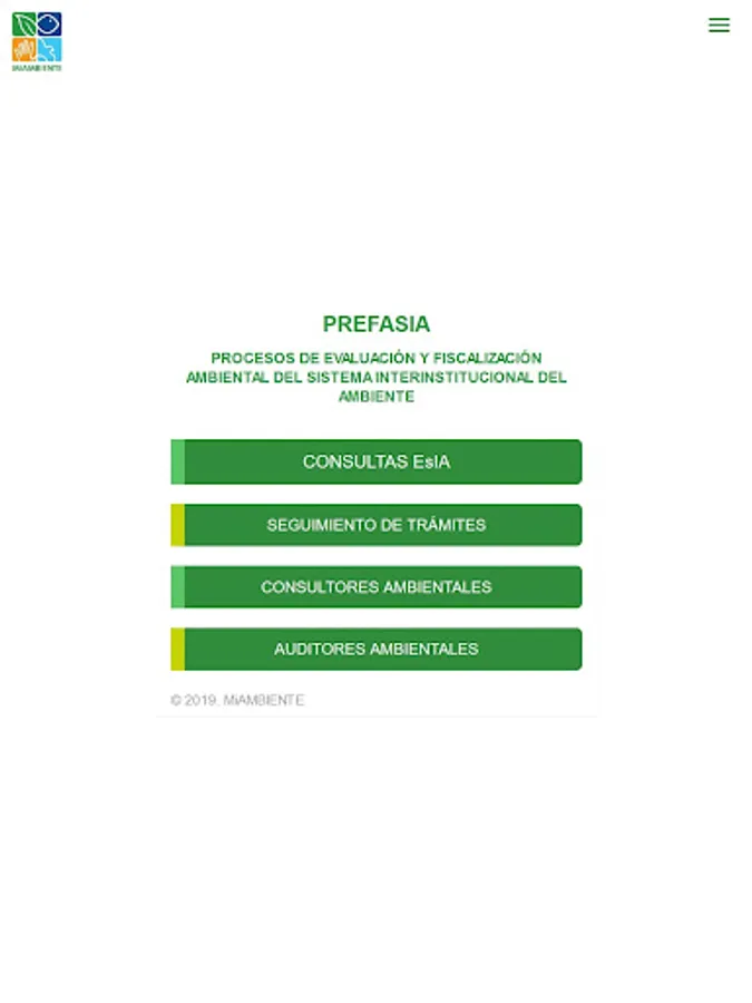 The PREFASIA platform (Processes of Evaluation and Environmental Inspection of the Inter-institutional Environment System) provides an online service for the following administrative procedures: