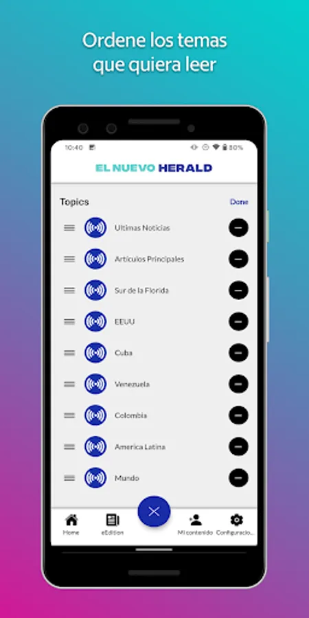 El Nuevo Herald, winner of the Ortega y Gasset Prize and finalist at the Pulitzer Prize, is the best Spanish-language newspaper in the United States. Our smartphone application allows you to customize how and when you want to read our news, see our photos or videos, check Walter Mercado's horoscope or the results of your favorite sports team, make comments and much more.