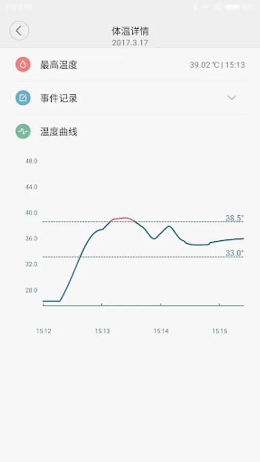 monitor the body temperature of children with fever , stick Meawow on to body , open the APP, the temperature data will transmit to your phone or pad and you can view the dynamic change of the temperature ,we can also draw the temperature curve and give alert if the temperature exceed the threshold . you can also record the event like take medicine or use cold compress