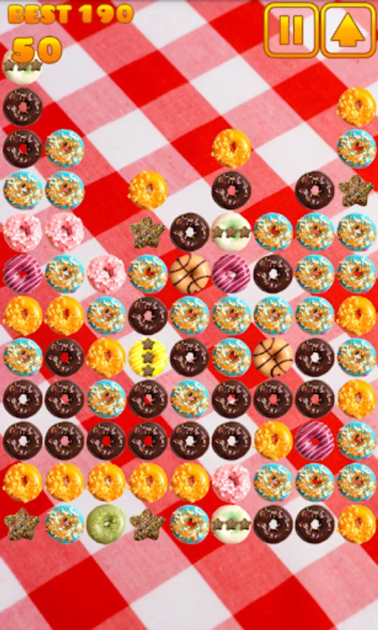 Donut Popping is a very simple yet addictive elimination game. You tap groups of 3 or more same donuts. Tap as many groups as possible until one column reaches the top of the screen. Try to tap donuts with star on it which will bring you special benefits. Gear up for this addictive and relaxing game and you won't be able to put this game down for hours.