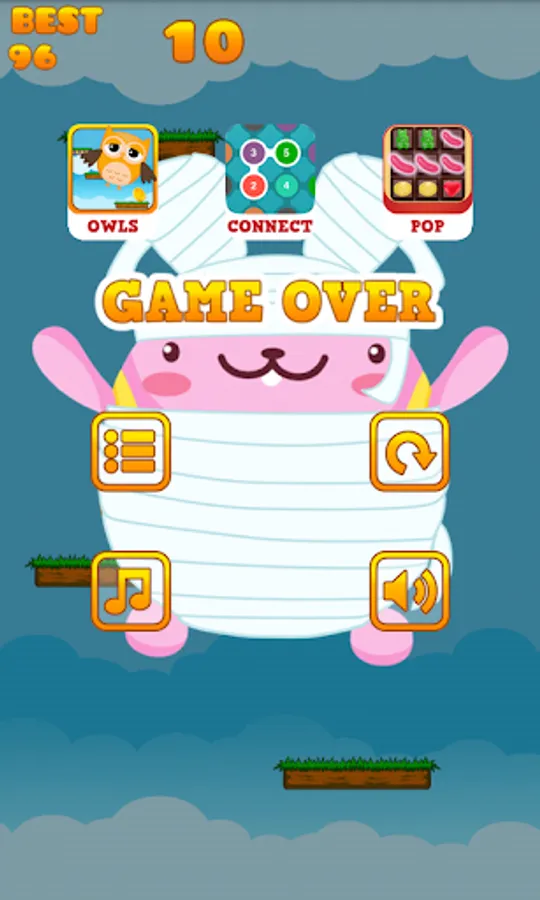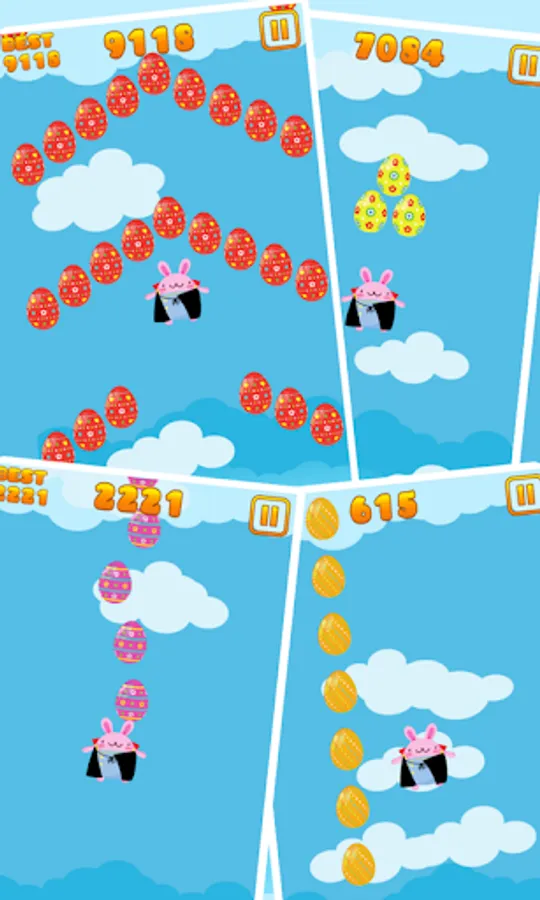How high can you jump? Fat Bunny jump is a very addictive jump adventure game. Jump to collect easter eggs, coins, diamonds etc. Tilt to move left or right.