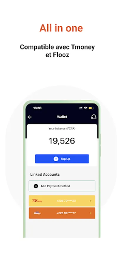 Compatible with Tmoney, Moov money and soon with visa card, orange money and more.