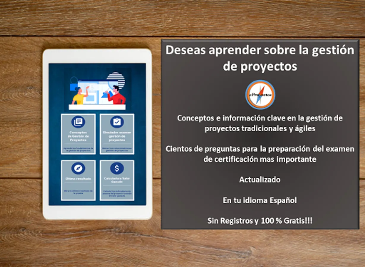 It has interesting concepts and information, a calculator to determine indicators of earned value, an exam simulator and everything you need to learn about traditional and agile project management.
