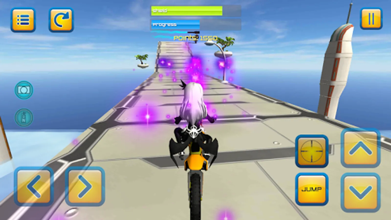 Welcome to Motorbike Girls Jumping Mission - amazing motorcycle shooting and driving game with anime style girls.