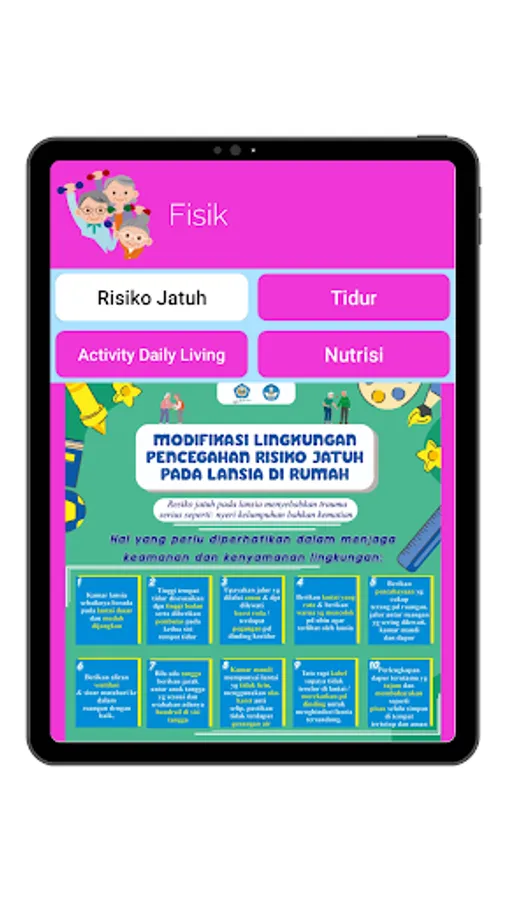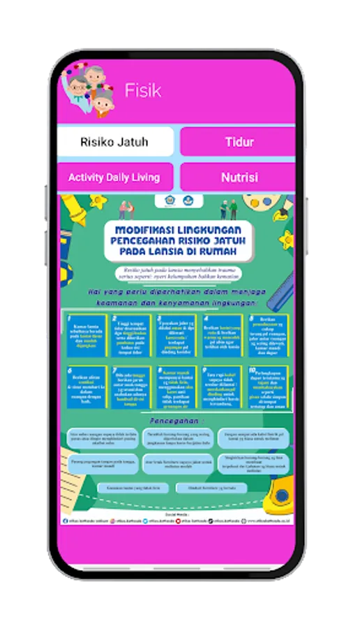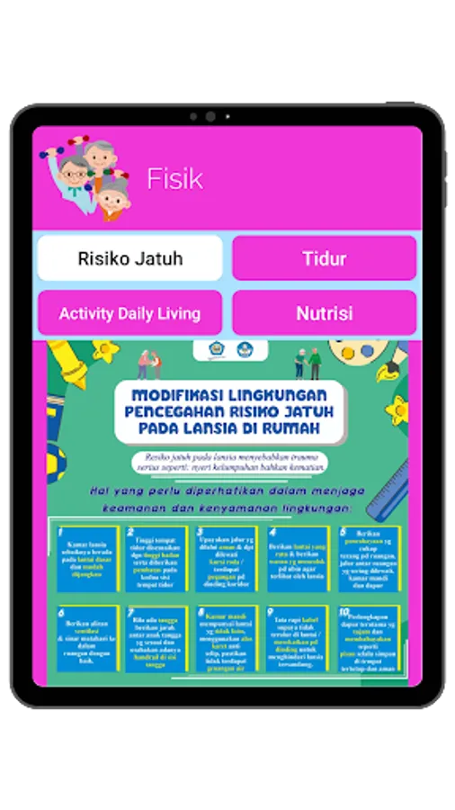 FiCa (Family Care) was created as a community-based innovation, targeting families specifically to assist families in carrying out their role in controlling the health of the elderly on a regular basis because they are the only people they have closest. Families are expected to be able to support a healthy lifestyle that should be used by the elderly for the rest of their lives, monitor the health of the elderly in an integrated manner and immediately report to the nearest health service if there is a significant decline in health in the elderly. FiCa can then be developed and used to bridge the need for health services to monitor the condition of the elderly through the family. In the FiCa application there are features such as screening for the elderly so that it will refer to education that can be applied including physical needs (physical activity and exercise, nutrition, sleep needs, environmental modifications, psychological (brain gymnastics), social (accompaniment for the elderly), and spiritual (spiritual meditation). Linked education can be carried out independently and taught to the elderly. Every week families need to record the condition of the elderly so that their health level can be monitored on a regular basis.