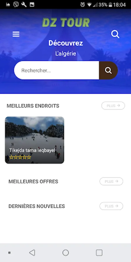 DZ Tour, هذا تطبيق صمم لمساعدة الناس على معرفة الجزائر والعثور على أفضل مكان للزيارة مصنوع من مجموعة Mibouira.me المتوافقة مع Android و iOS