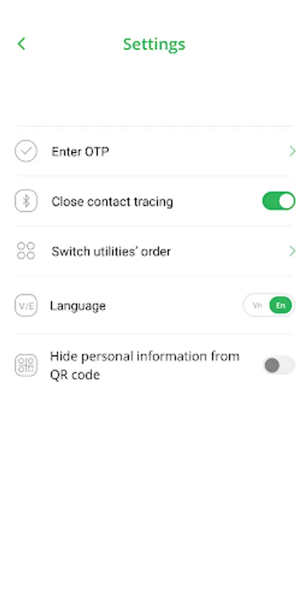 Check-in places: Citizens can view details about the places they have been to and performed QR code scanning when entering/leaving. The details include names of the places and relevant times (detailed time of each QR code scan).