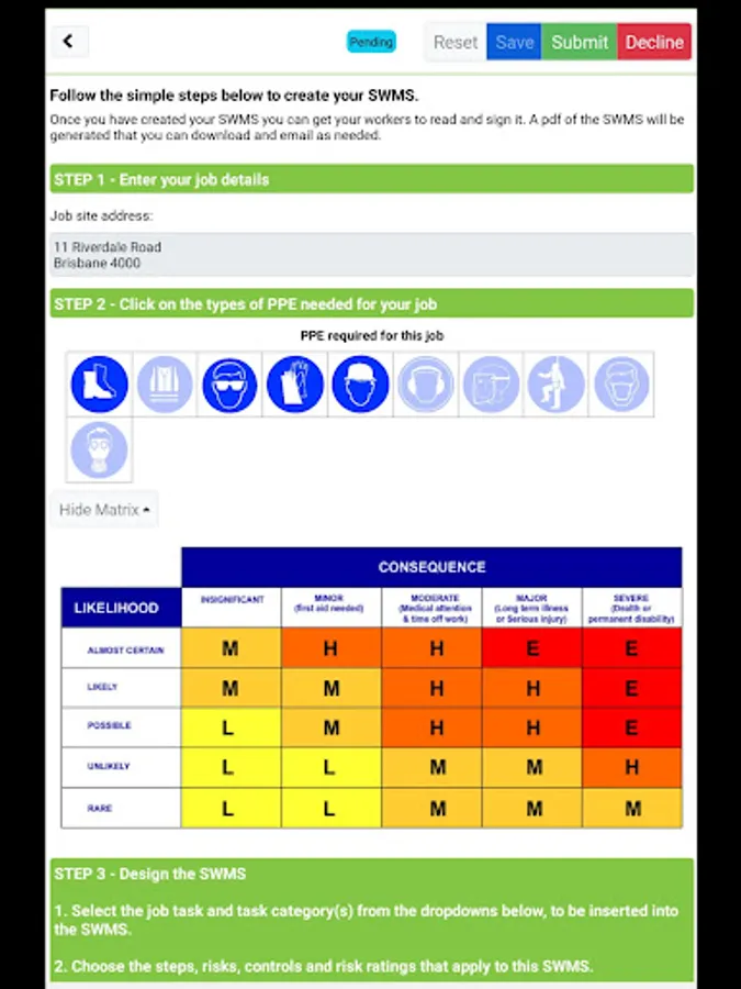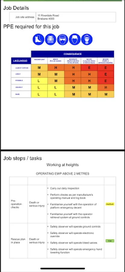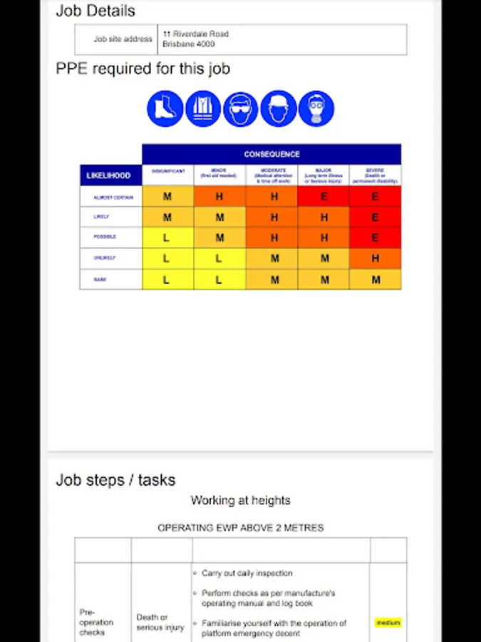 Job Docs enables users to generate customised industry documents such SWMS and JSA, send them for approval to selected personal and share the completed PDF. The App is also available in as a Web App.